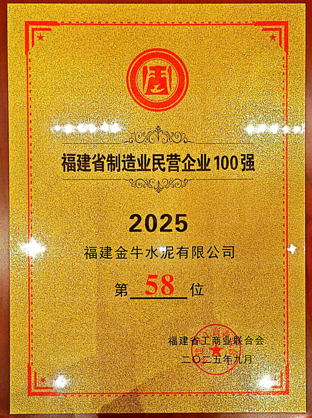 福建和记娱乐官网水泥有限公司入选”民营制造业百强“榜单。